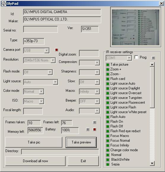 almost ANY remote), takes the picture, saves it to HDD and cleans the camera memory, so